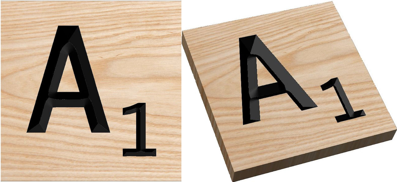 These Scrabble tile are v-carved out of a 6" X 6"
